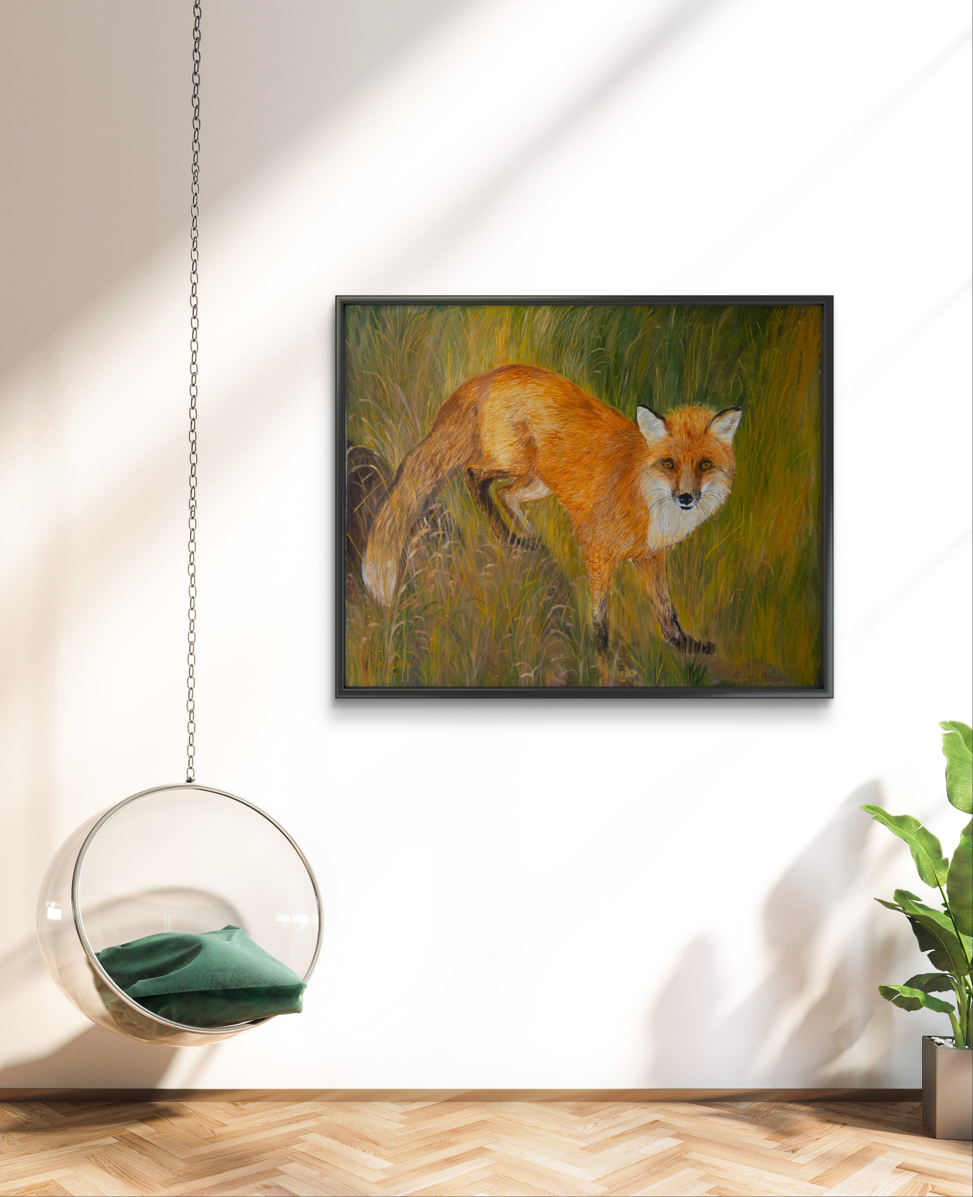 In the soft glow of early morning, the red fox tiptoes through the sun-drenched meadow. Its russet coat catches the light, creating an ethereal halo around its form. The golden grass sways gently, whispering secrets to the world—a symphony of warmth and tranquility. “Amber Whispers” invites us to linger, to savor the delicate balance between wild beauty and quietude.