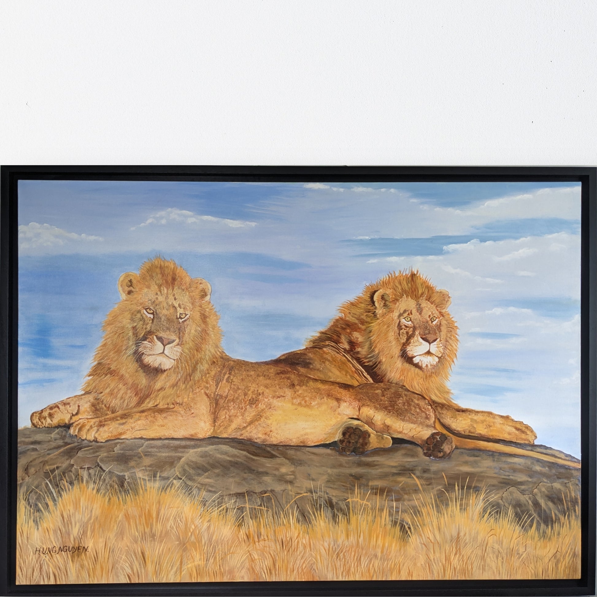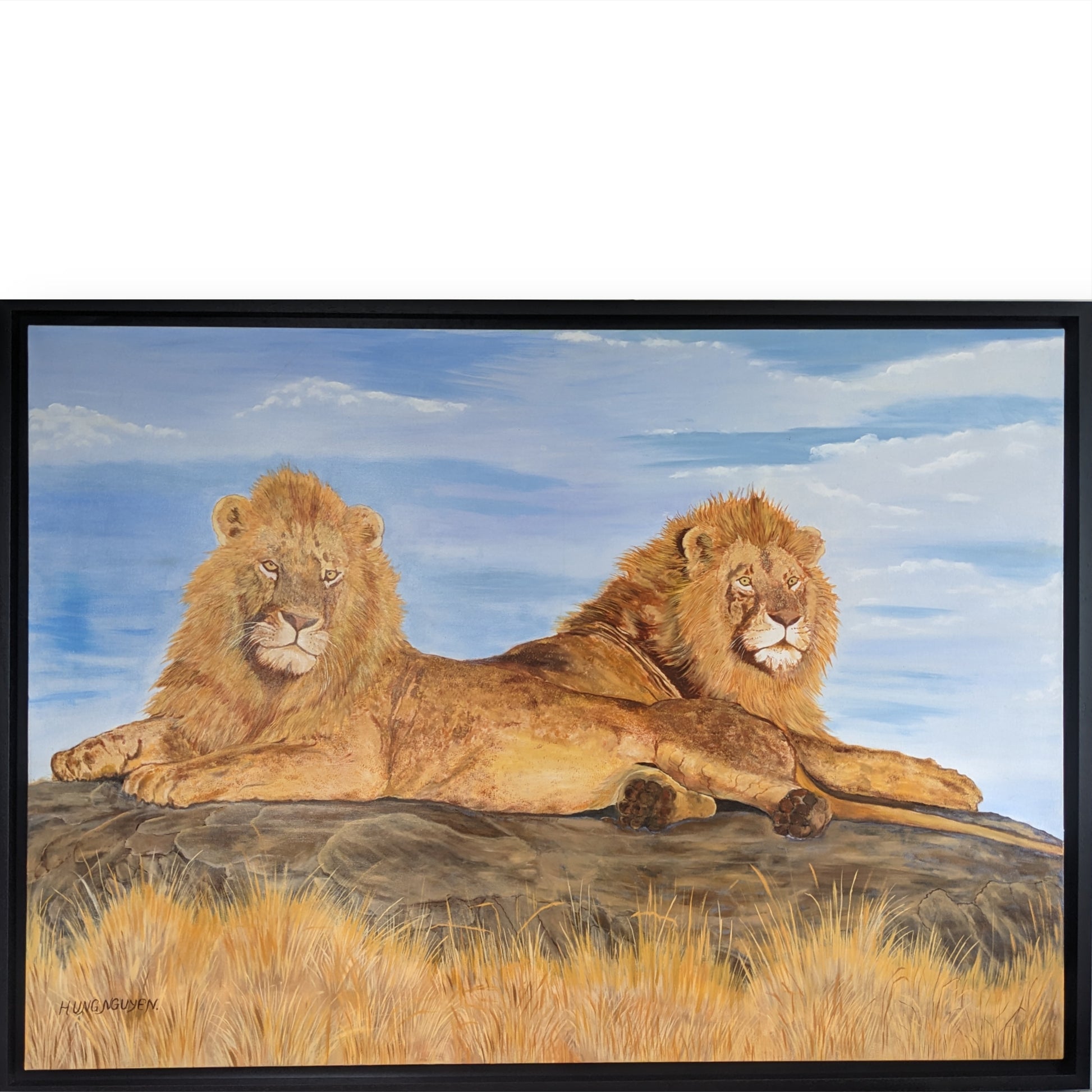 Brothers - Oil on canvas 140x100 cm, included float tray frame, size 145x105 cm, painted by Hung Nguyen in 2023